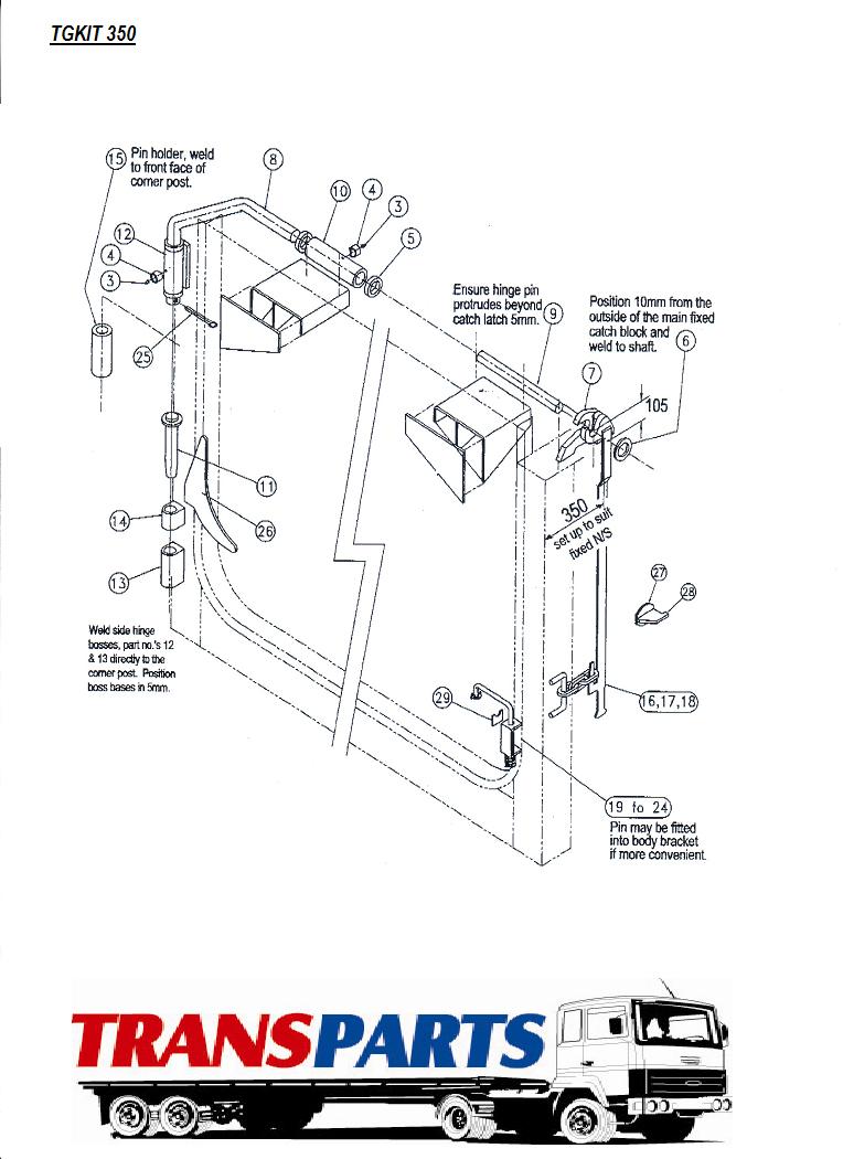 Truck Tailgate latches and hinges, Rear pivot assemblies to suit most size Tippers.
